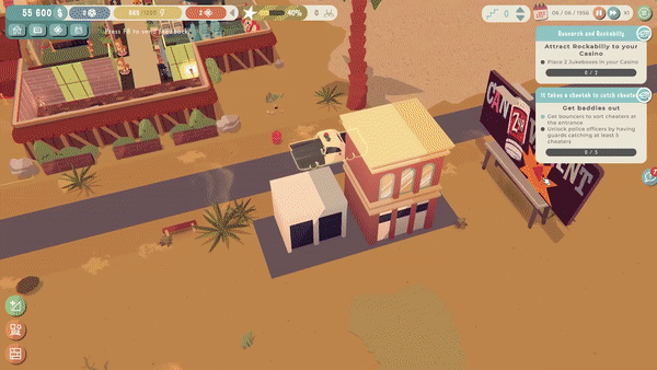 在拉斯维加斯建造、设计并经营你的复古而繁华的娱乐场所吧。管理你的员工,网罗各类客户和尊贵的 VIP,满足他们五花八门的需求。让所有人都开心,自然财源滚滚。