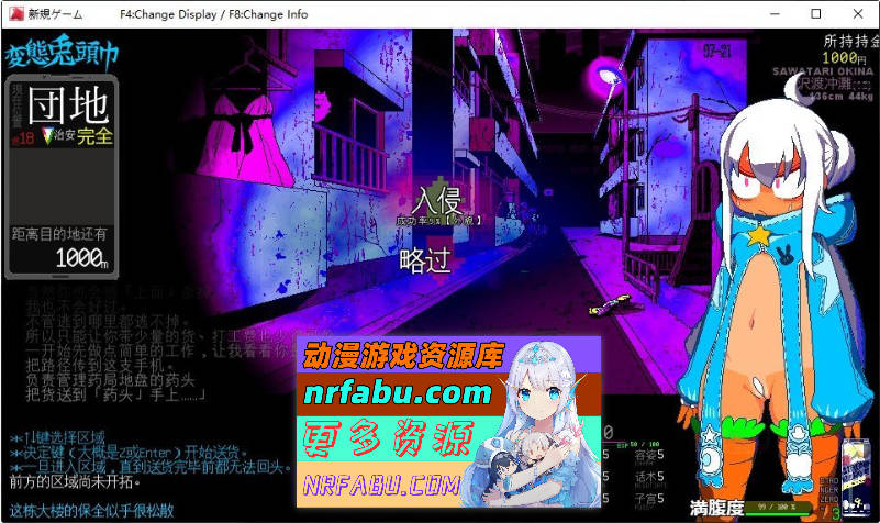 变态兔子头巾是一款全果夜间跑酷的小游戏,女主带着奇特的兔子帽子,赤裸身体在夜间的大街小巷之间跑酷,中间还可能会遇到其他痴女和其他喜欢露出的小姐姐,得到分数(金钱)还可以买特殊道具,游戏有简单的「战斗系统」,总之有各种奇妙的H事件在等着你,游戏使用像素风风格的CG,非常涩。
