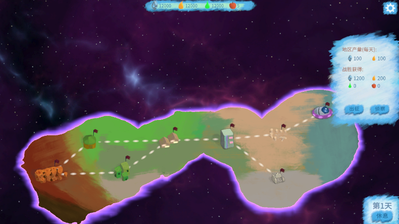需要在大地图上选择合适的进攻目标,不同地区可以获得不同的资源